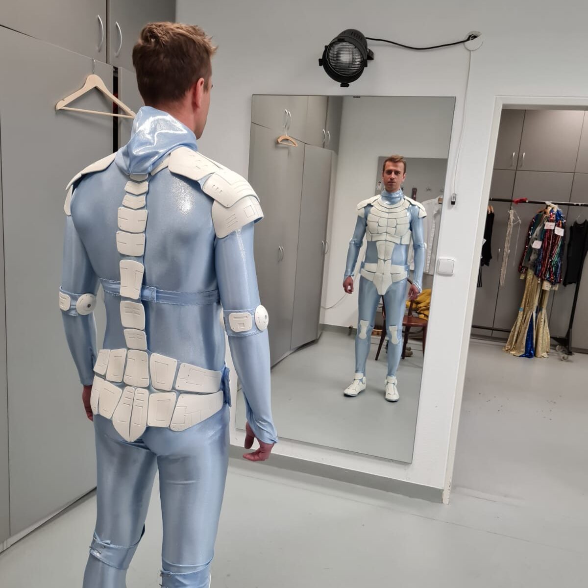 Protože šlo o kostým náročný na anatomii a přesnost lícování, byl jeho 3D návrh postaven na detailním 3D skenu herecké postavy. Díky tomu bylo možné připravit přesné segmenty, které respektují pohyb, proporce i fyzickou skladbu samotného herce.